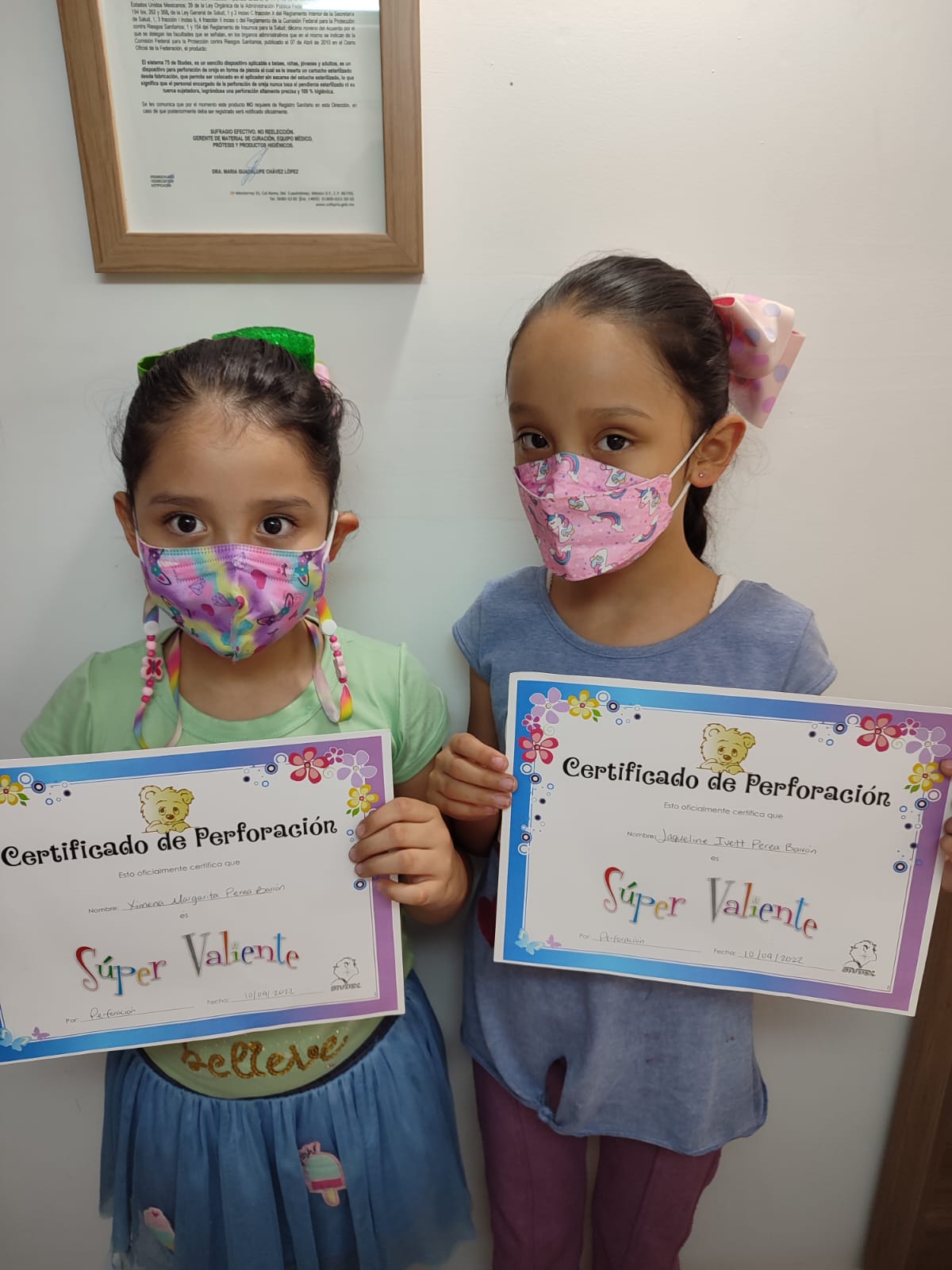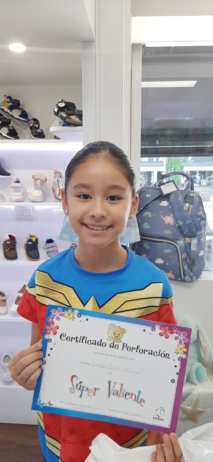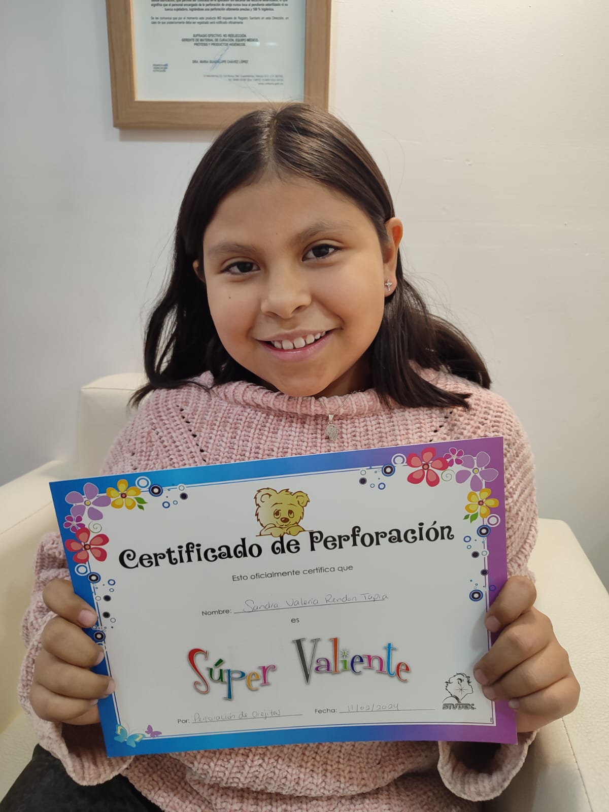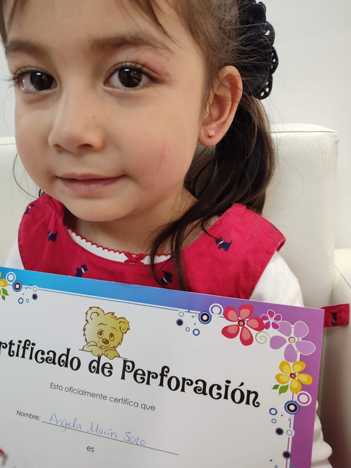Es importante mencionar que no es posible colocar tus aretes, ya que los cartuchos vienen sellados y esterilizados con aretes especiales para la máquina. Podemos colocar los aretes que elijas para un cambio después de que el piercing sane, siempre y cuando sean de oro, acero o titanio (mínimo 1 mes después de la perforación). Nuestra prioridad es brindar un servicio seguro y de alta calidad para los más pequeños, ¡porque su seguridad es lo primero!.