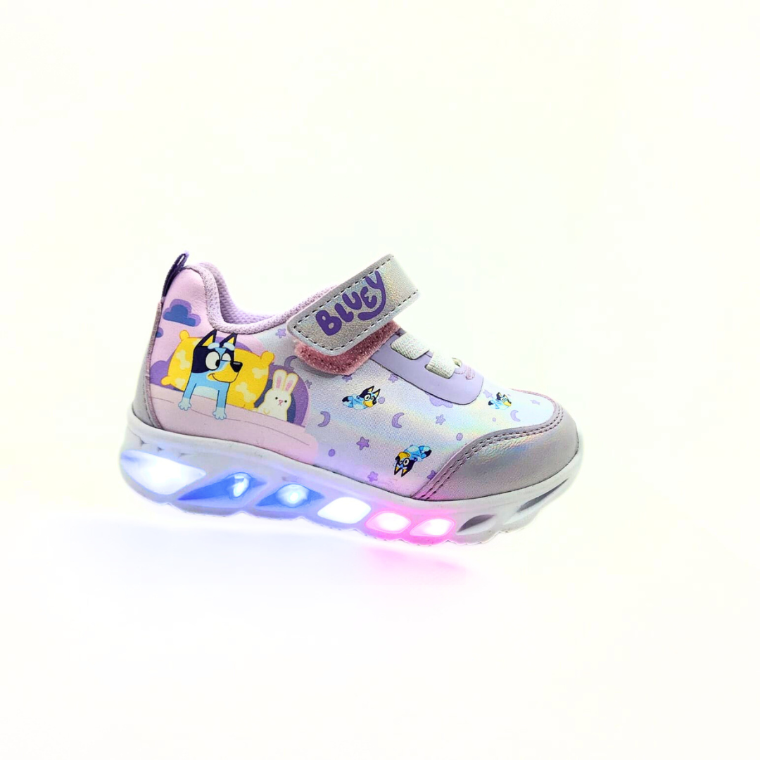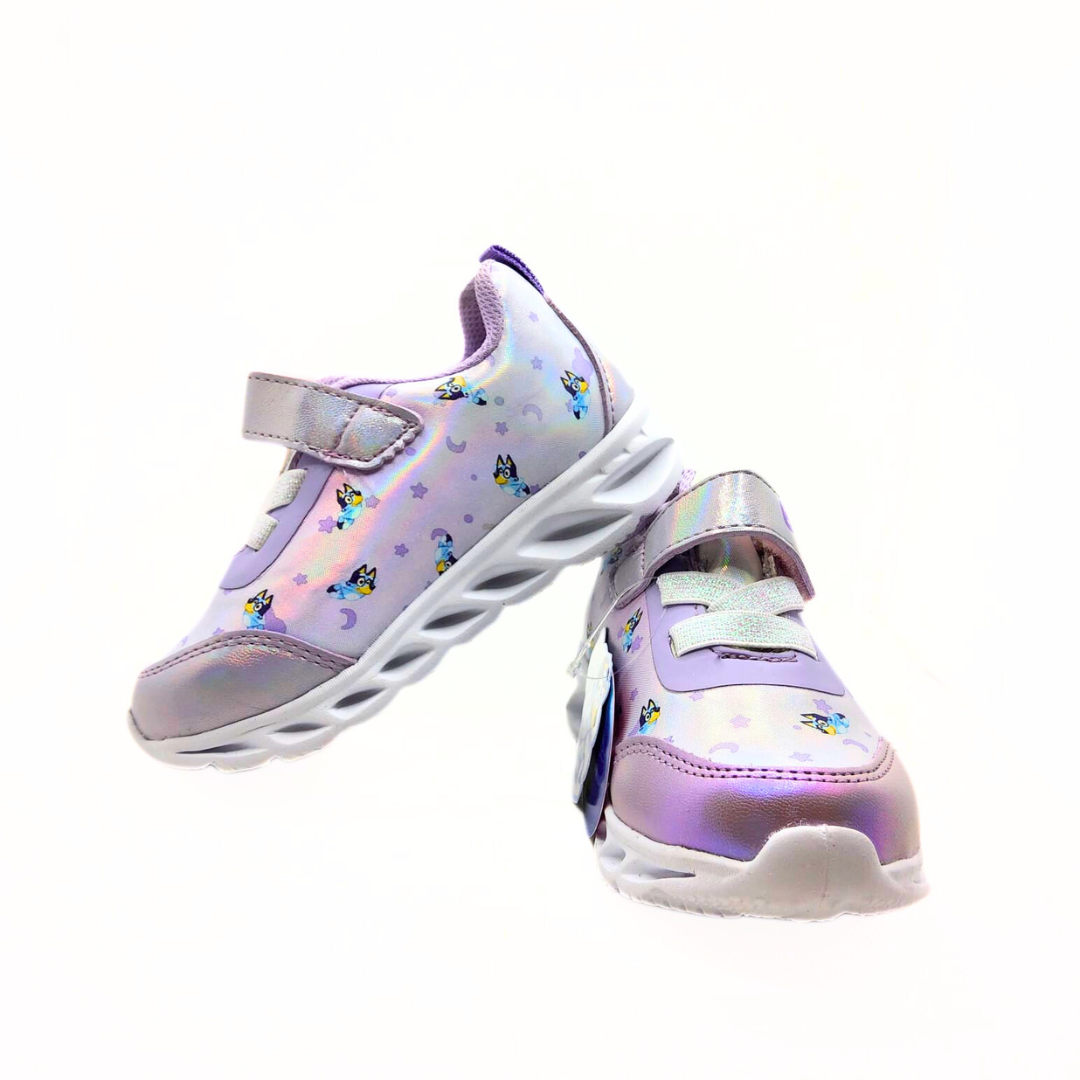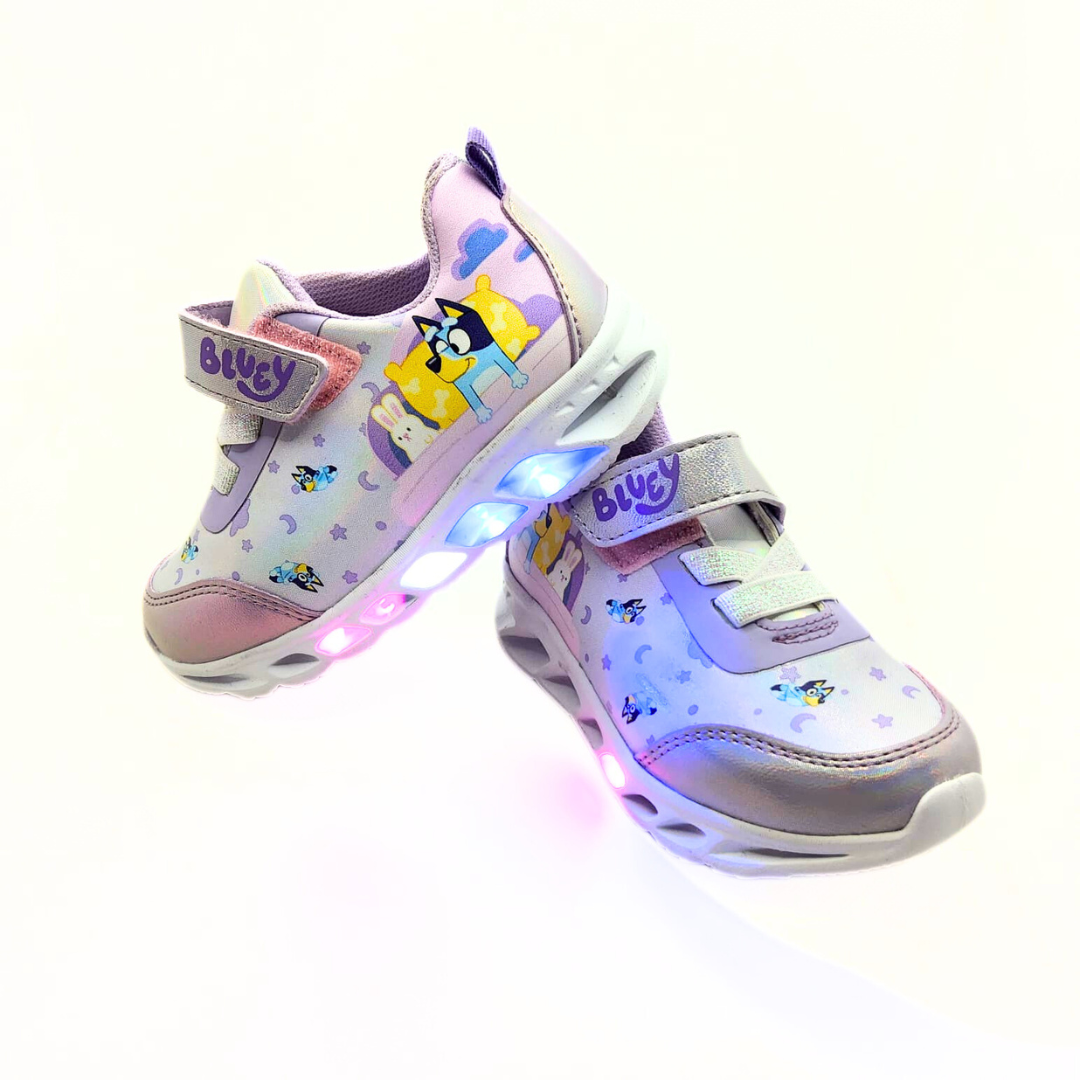 ¡Magia y estilo en cada paso! Estos tenis de Bluey en fantasía lila son ideales para las pequeñas aventureras. Su diseño cómodo y encantador se complementa con luces que se encienden al pisar, añadiendo un toque divertido a cada movimiento. ¡Perfectos para destacar en cualquier ocasión!