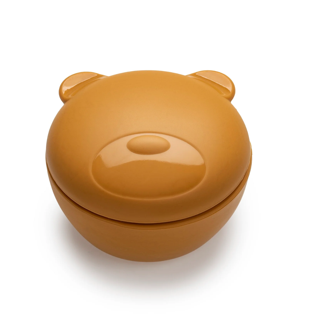 Fabricado con 100% silicón de grado alimenticio, es seguro para los niños: libre de BPA, PVC, plomo y cadmio. Apto para microondas y refrigerador, es práctico y encantador gracias a su diseño de osito.