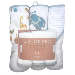 Suaves, prácticas y adorables. Este set de CHICKPEA es perfecto para envolver a tu bebé con calidez y ternura después del baño. Incluye tres toallas con capucha y juguetes de baño confeccionadas en materiales suaves y absorbentes, ideales para la delicada piel del bebé.