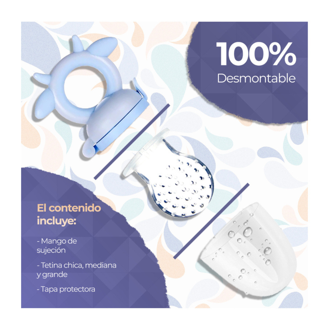 • Chupón alimentador que alivia el dolor de las encías con la mamila texturizada • Con el chupón alimentador desarrolla sus sentidos • Las mamilas del chupón alimentador es fácil de limpiar • Calidad y seguridad en cada diseño de los chupones alimentadores de frutas • ¡Los chupones alimentadores de frutas y papillas son para niño y niña! Importante: Chupón alimentador para frutas, material Libre de BPA.