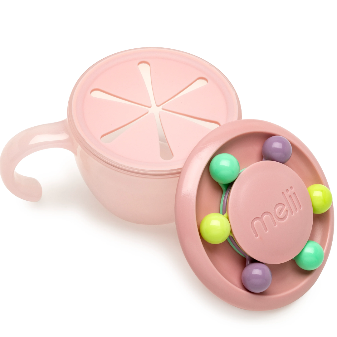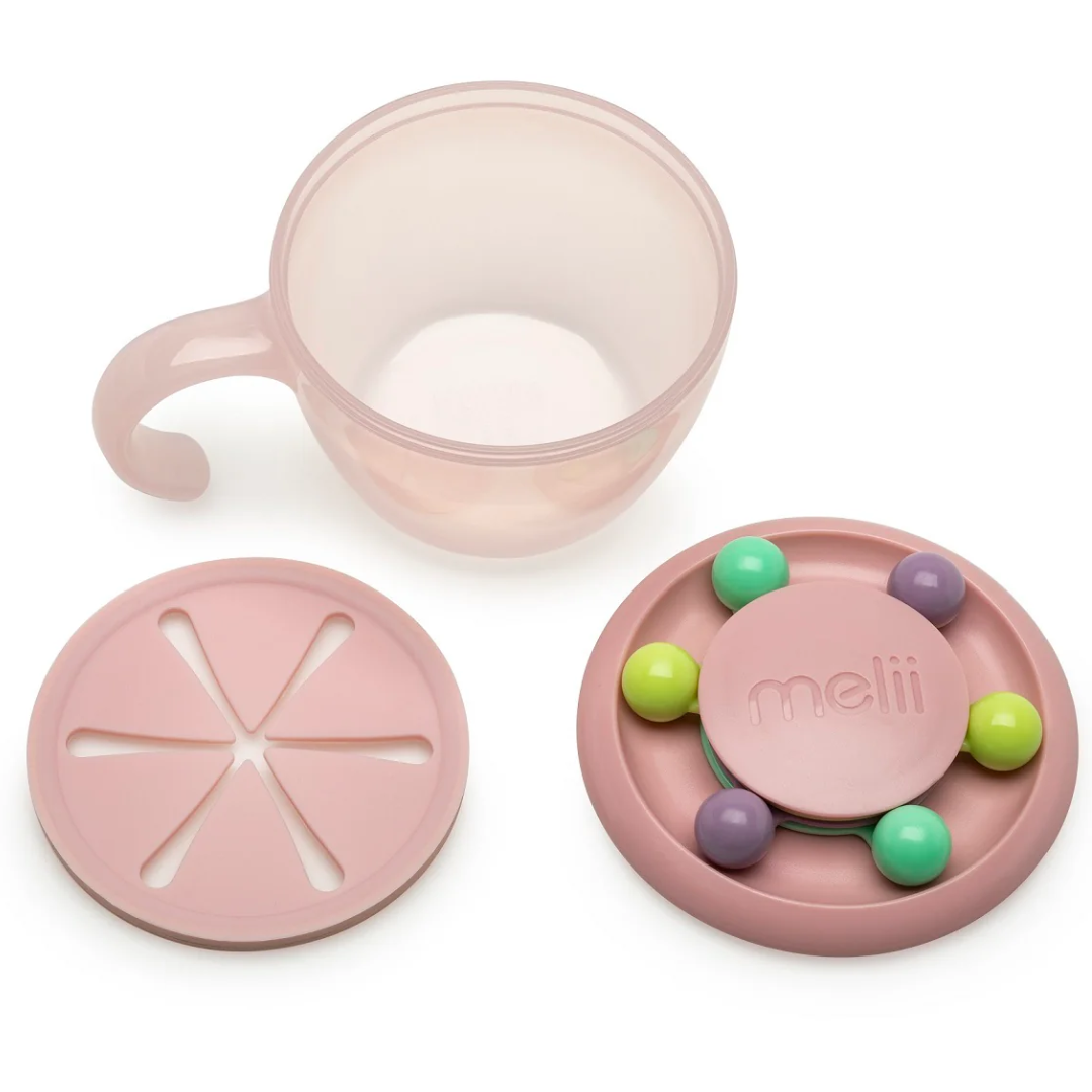 ¡Almacenamiento práctico y divertido! El Melii Contenedor de Tapa Ranurada Rosa combina funcionalidad y entretenimiento. Con 200 ml de capacidad y tapa hermética, es ideal para snacks o juguetes pequeños, evitando derrames.