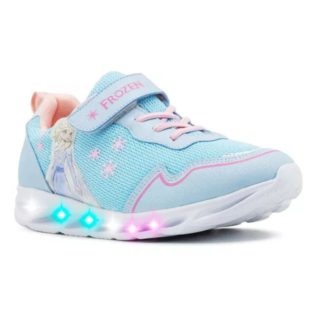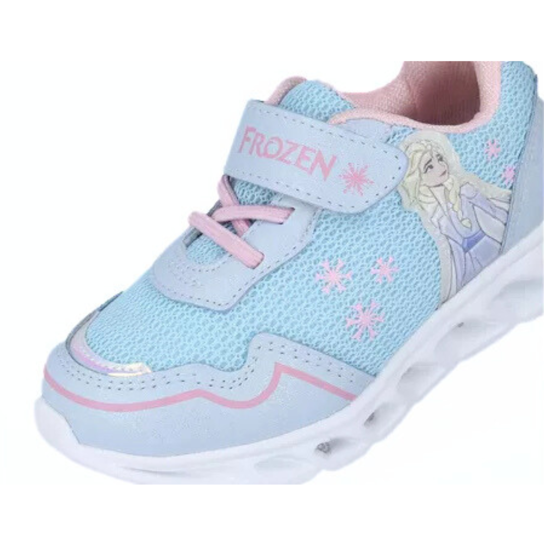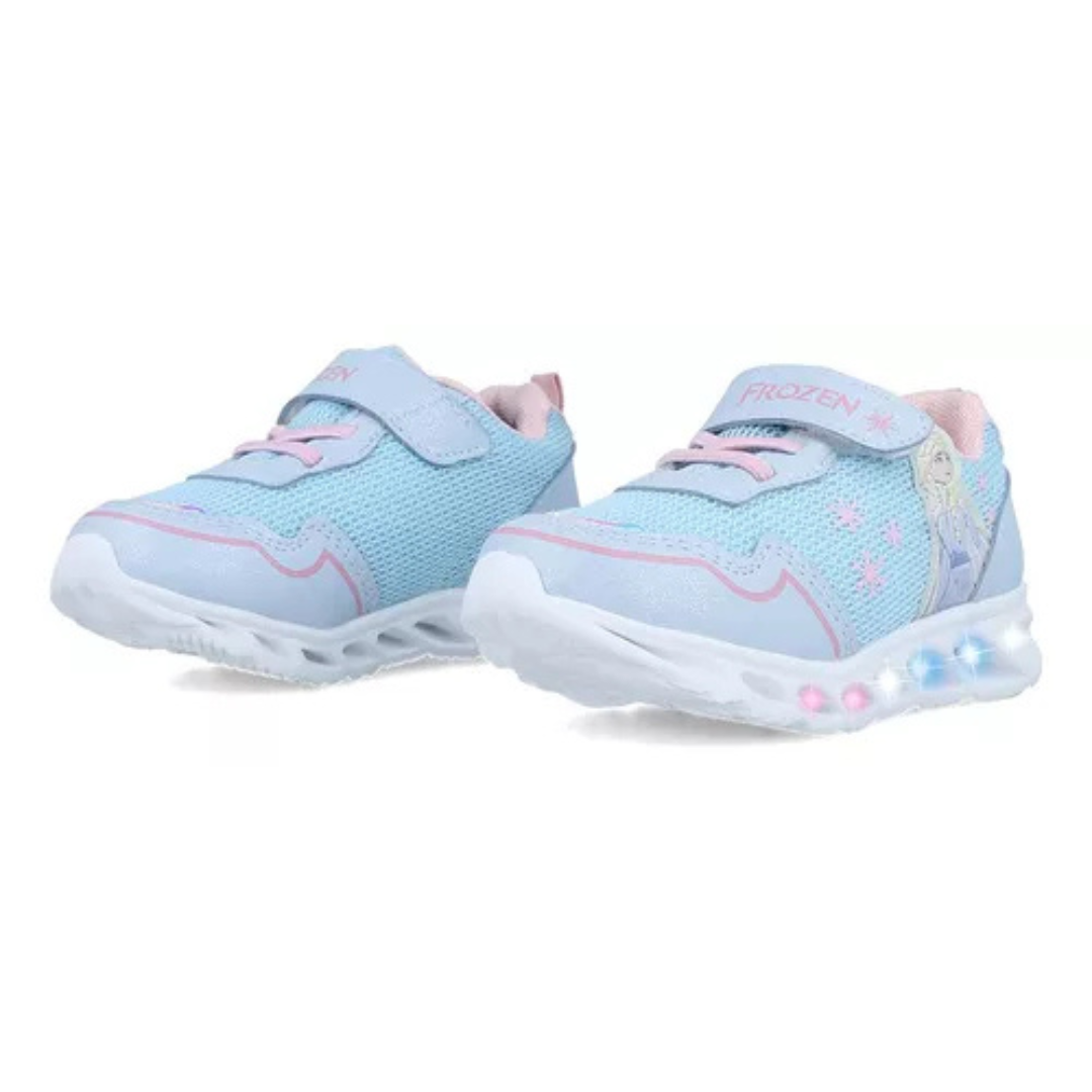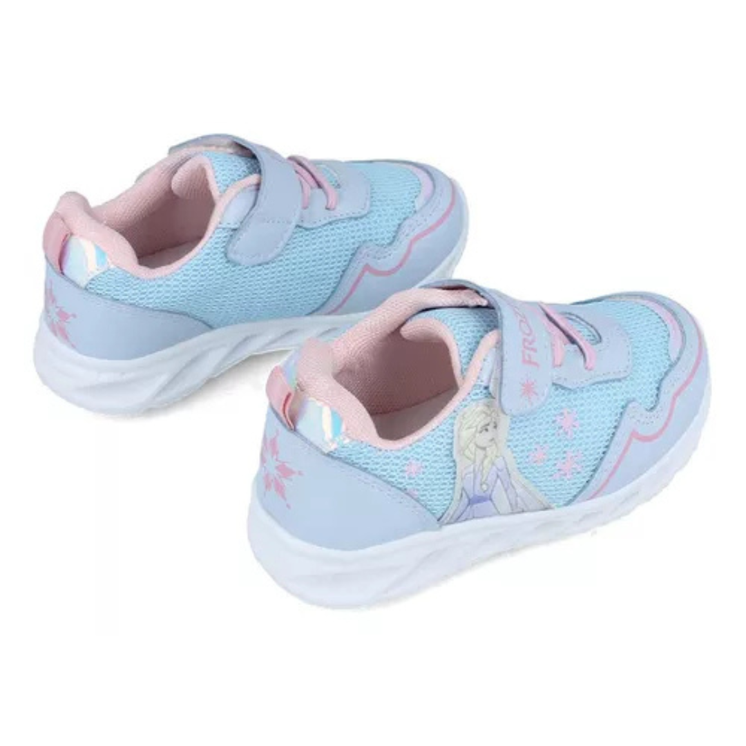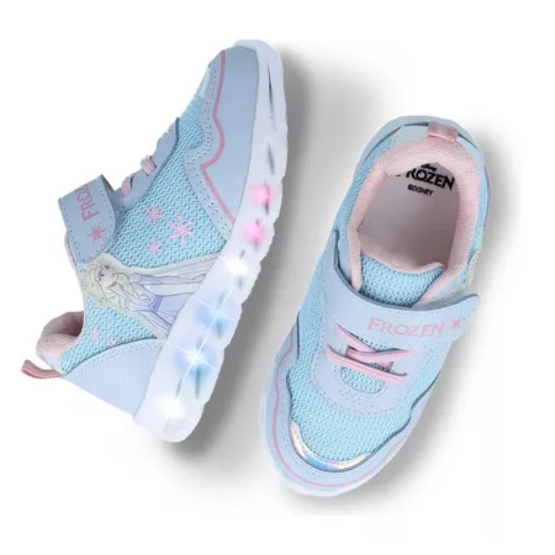 Tenis Deportivo con divertido personaje de Frozen, hecho con material sintético/textil y forros de tela que ayuda a que transpire el pie, se ajusta con una tira con velcro y agujetas elásticas que aportaran seguridad y confianza a tu pequeña en cada paso y en el desarrollo de sus actividades del día a día, encontrara comodidad ya que es un calzado muy ligero y flexible que permite su movimiento fácilmente, además la suela sintética y antiderrapante le dará estabilidad.