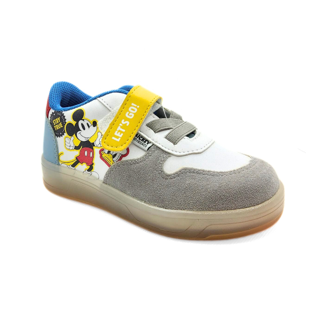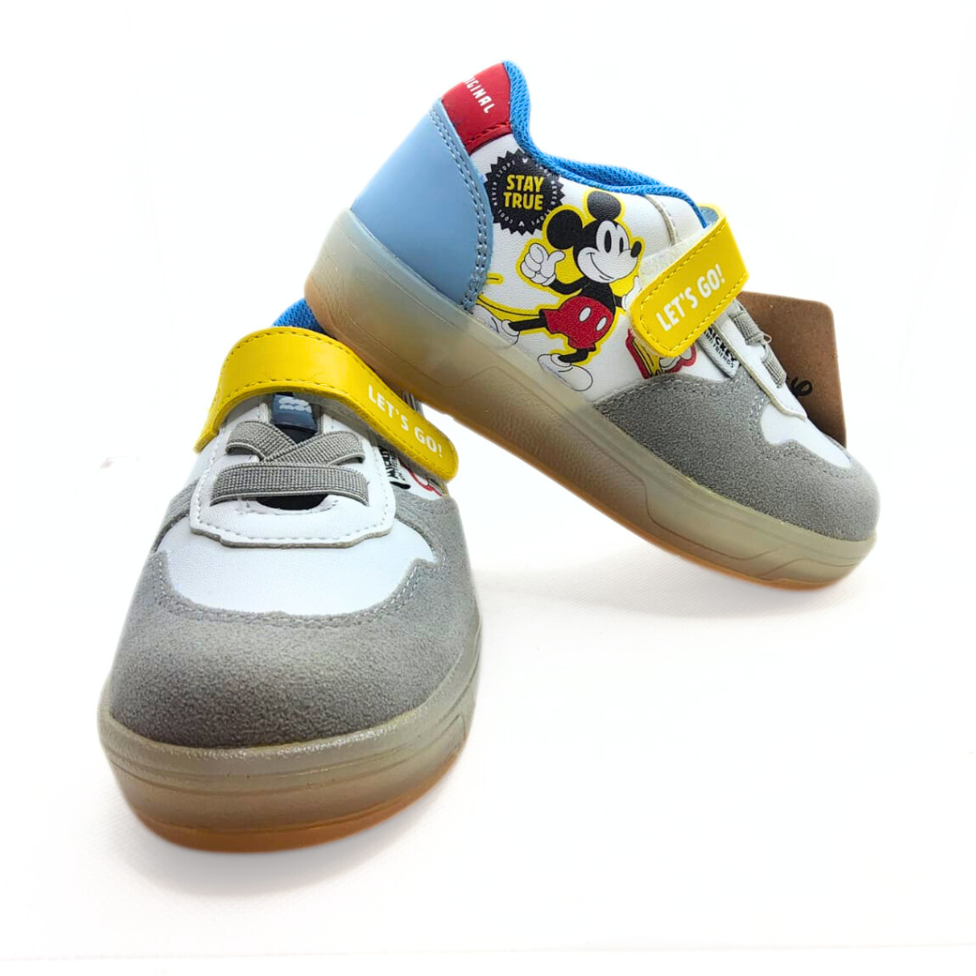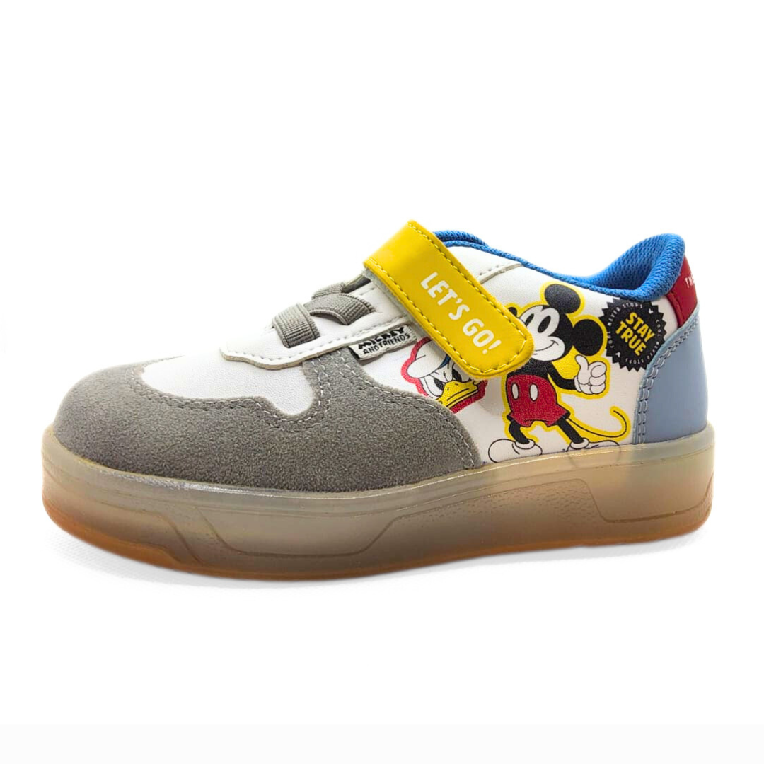 Tenis Disney Selma en color blanco con diseños de Mickey y Donald. Incluyen velcro para un ajuste cómodo y seguro al pie del bebé. ¡Perfectos para cualquier ocasión!