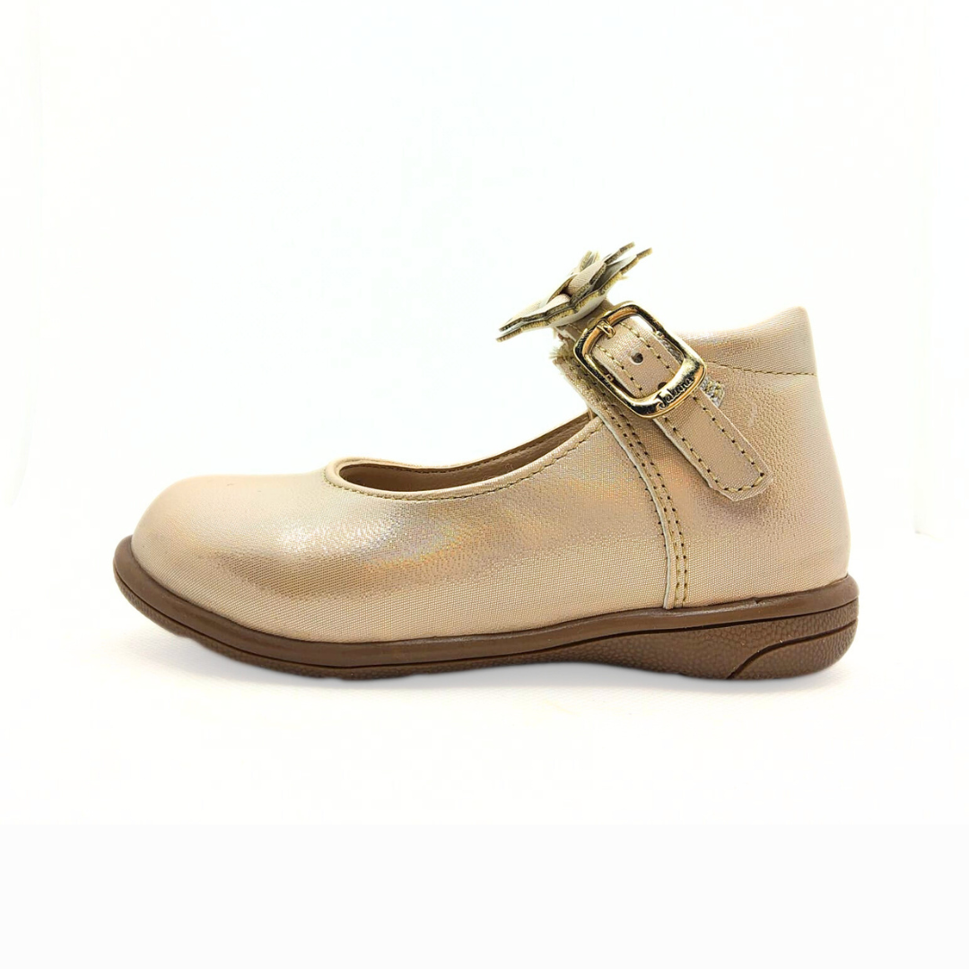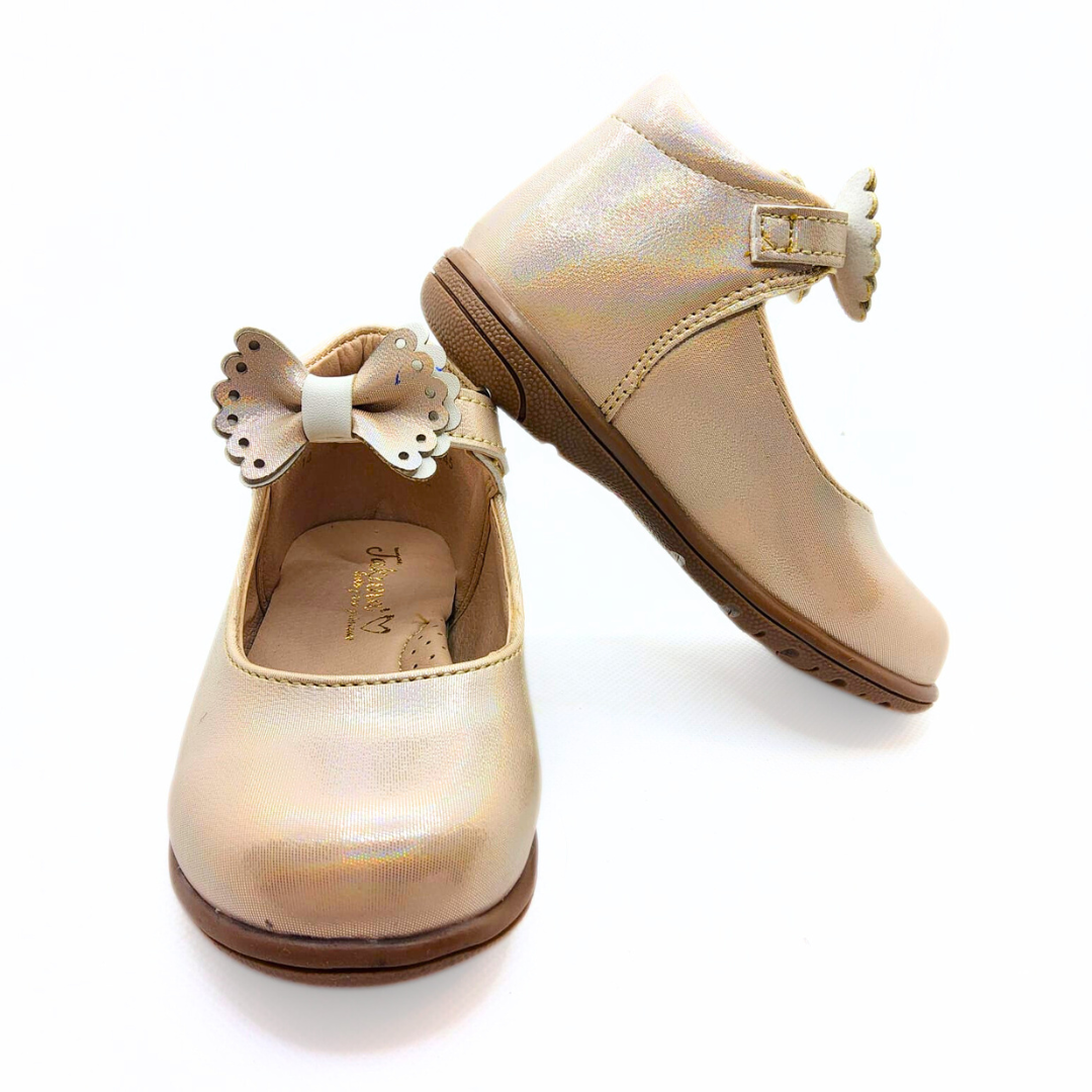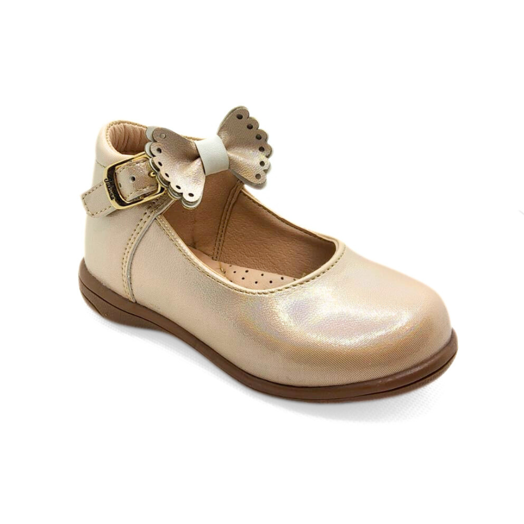 Los zapatos tipo ballerina Jakuna Alina Platina combinan elegancia y comodidad para las pequeñas. Su diseño incluye un encantador moño en la correa ajustable que asegura un calce perfecto al pie, ofreciendo estilo y soporte. Perfectos para ocasiones especiales o para añadir un toque refinado al día a día.
