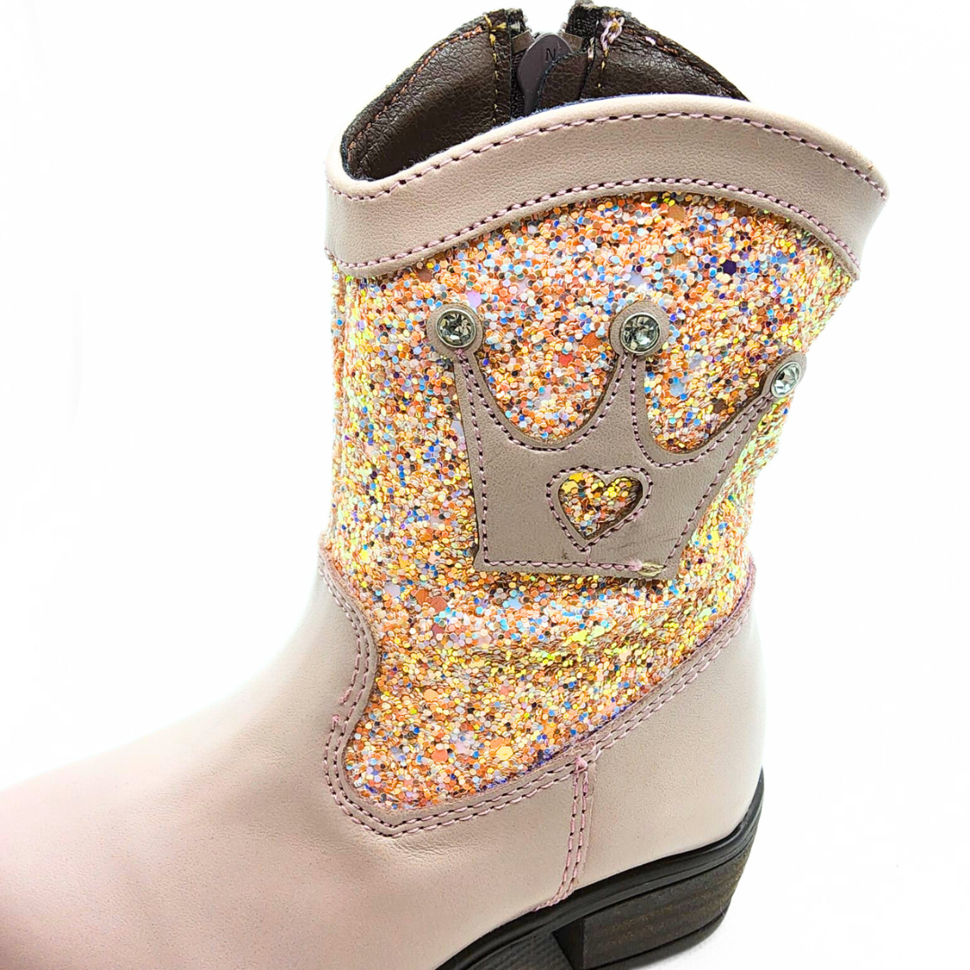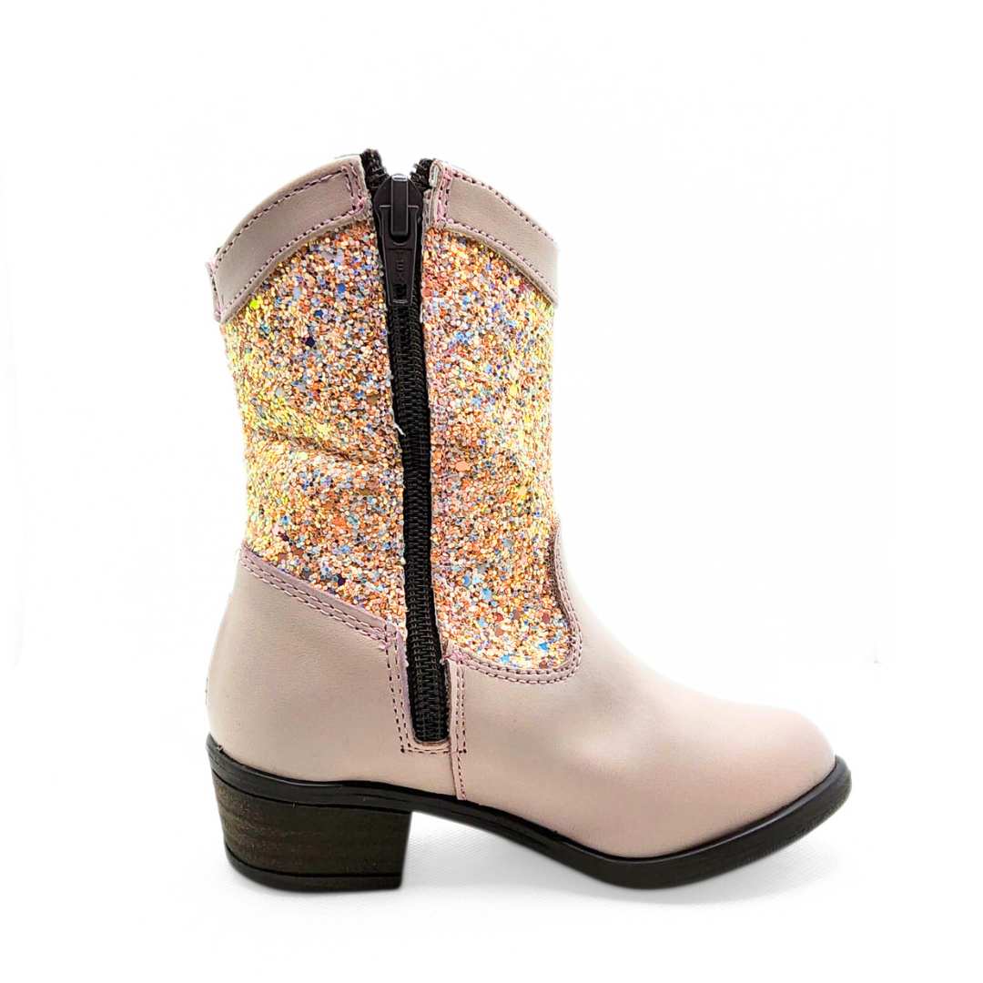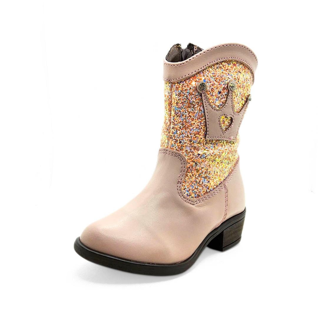 Estilo vaquero con un toque de brillo ✨. Estas botas combinan la resistencia de la vaqueta con un diseño rosa encantador lleno de detalles brillantes. Perfectas para las pequeñas que aman destacar con estilo y comodidad. 👢💕