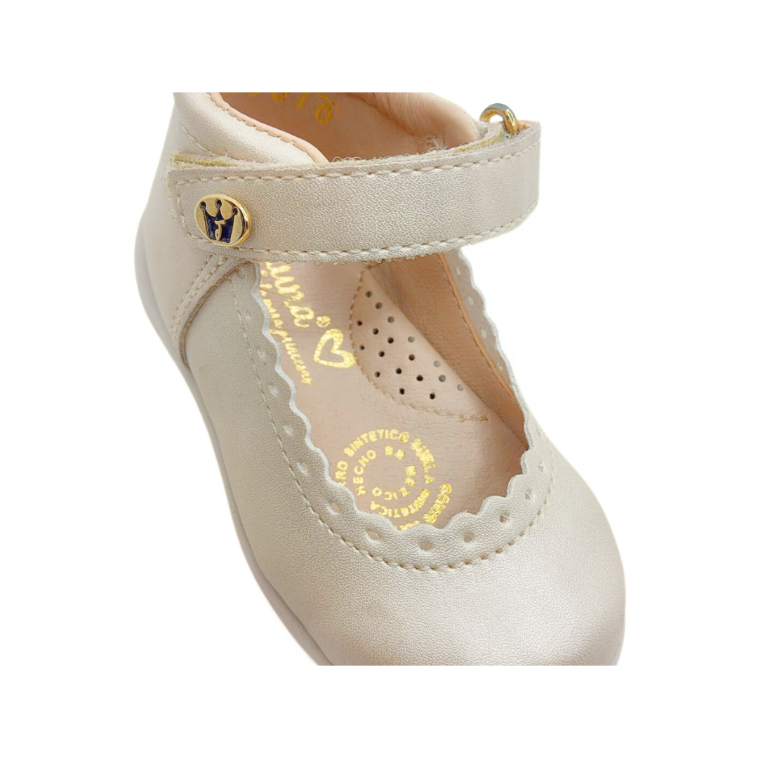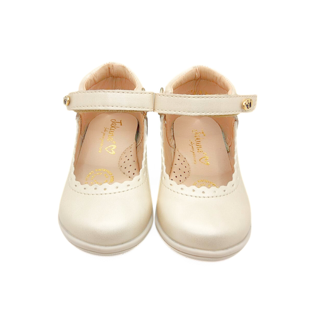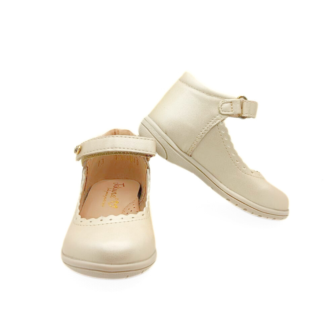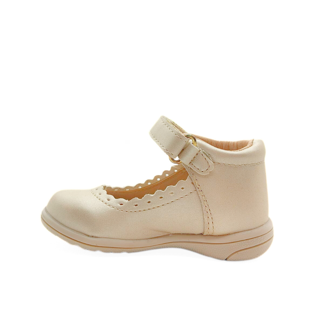 Elegancia y practicidad en un solo diseño. Este zapato cuenta con un delicado holán en el escote, traba de velcro para un ajuste fácil y seguro, y suela antiderrapante para mayor confianza en cada paso. Perfectos para lucir impecable y cómoda. 👧💕