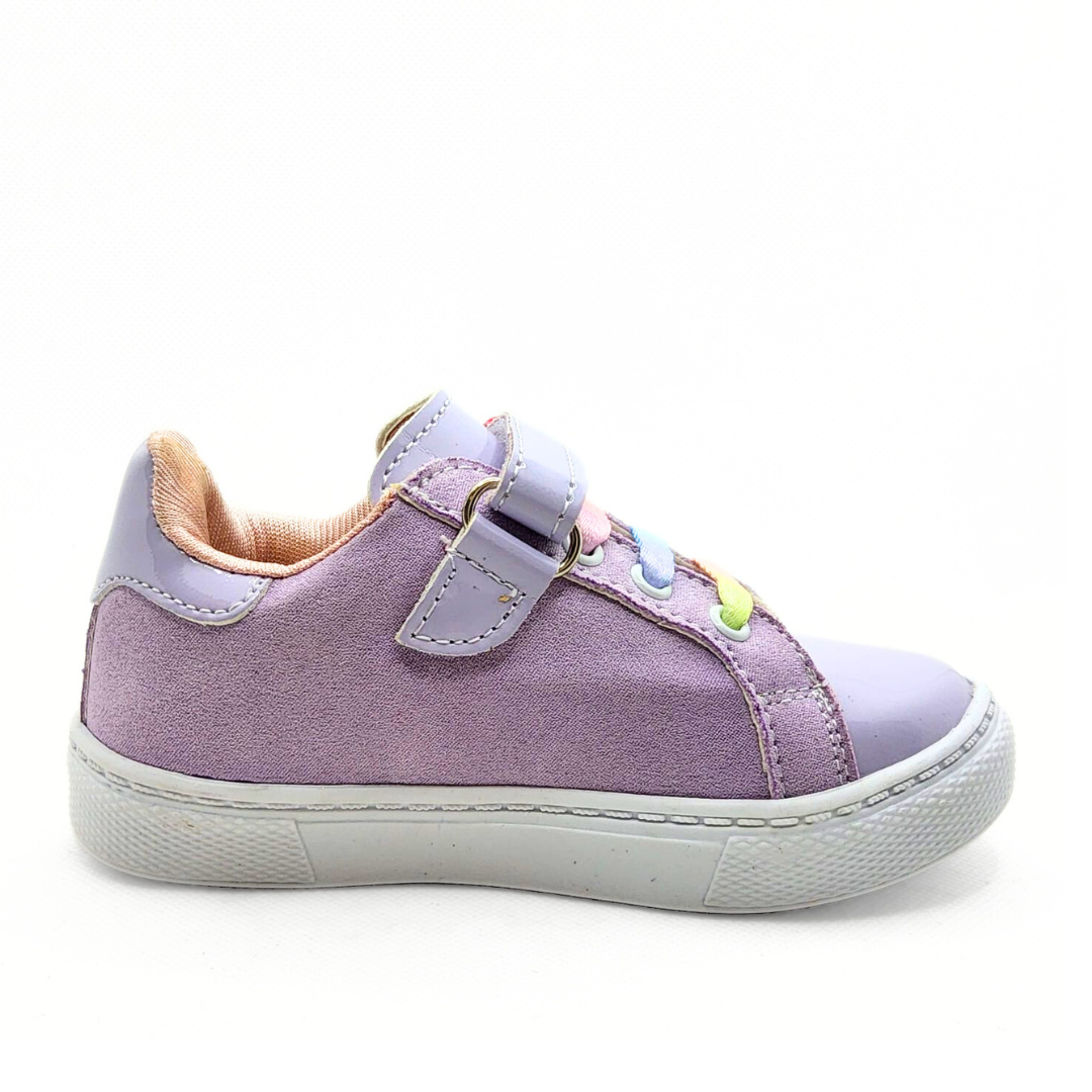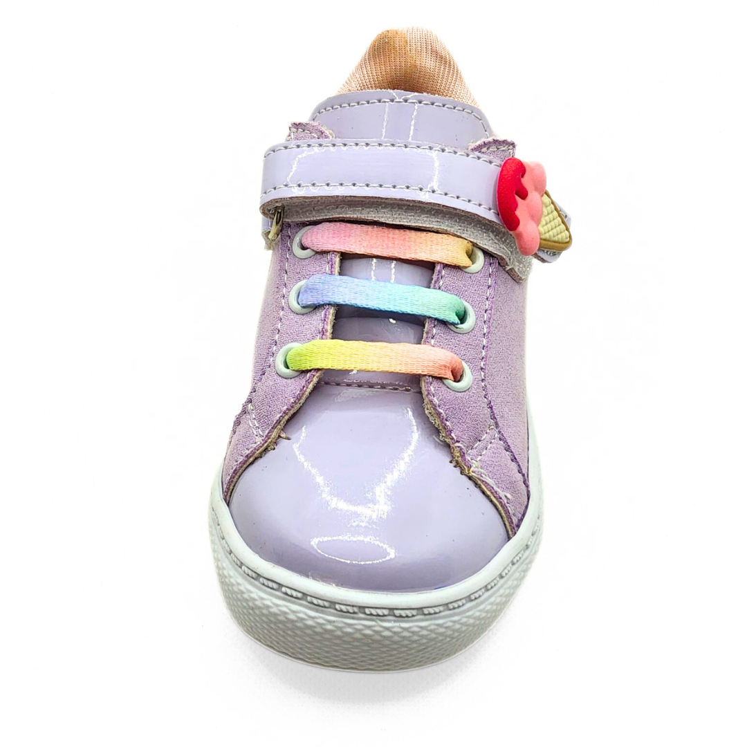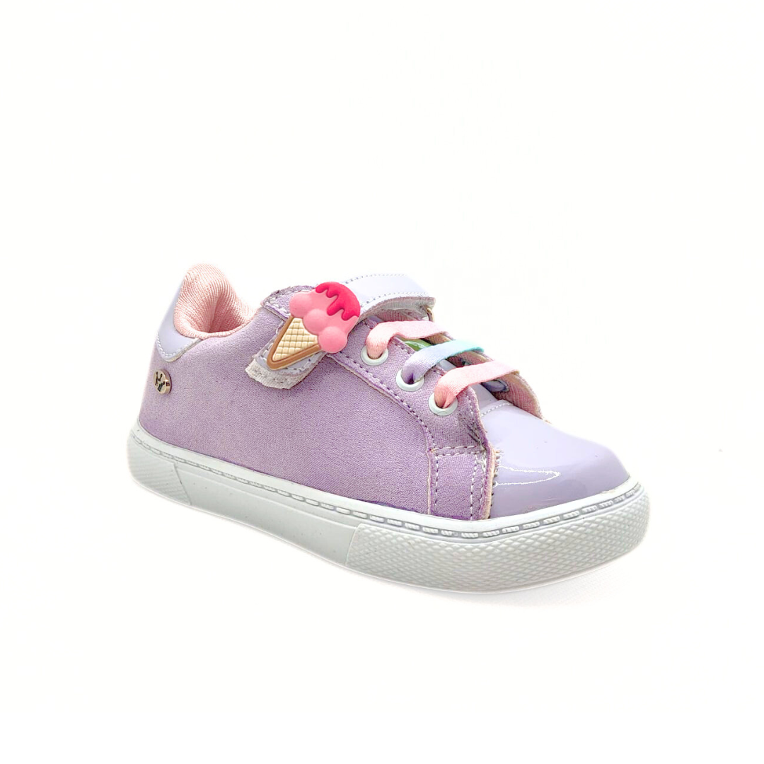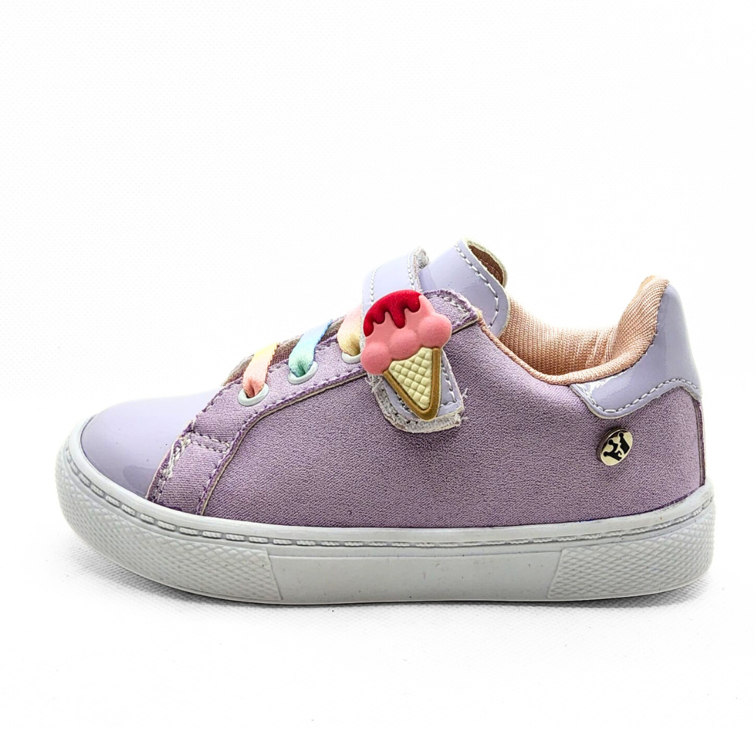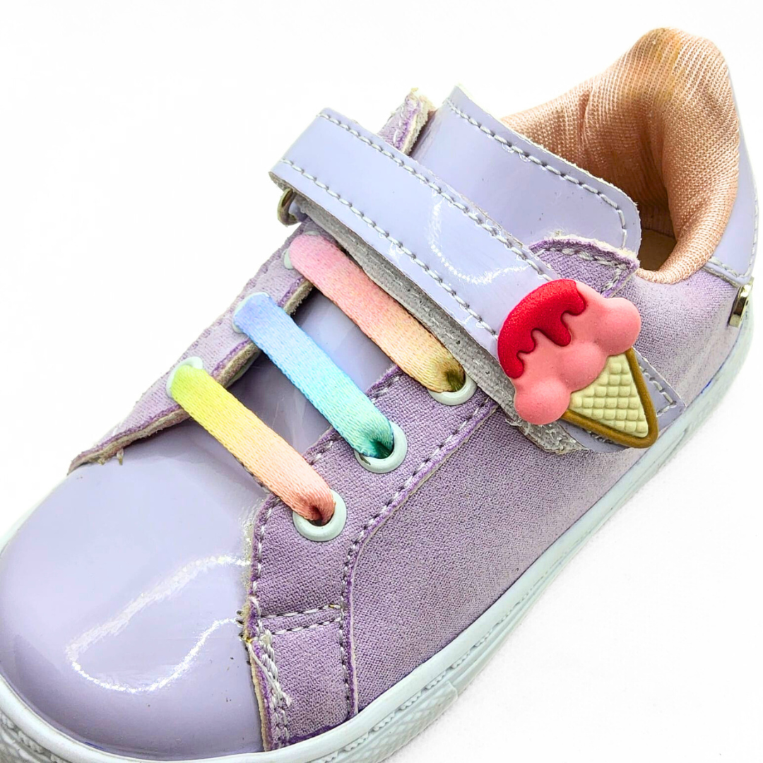Tenis Jakuna Durazno Lavanda: diseño encantador con cintas multicolor y práctico cierre de velcro, adornado con un tierno detalle de cono de nieve. ¡El toque perfecto para un estilo dulce y divertido!