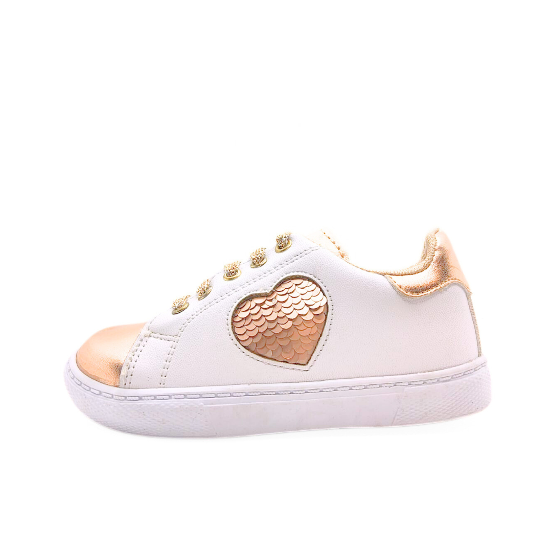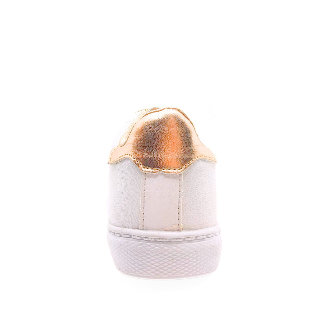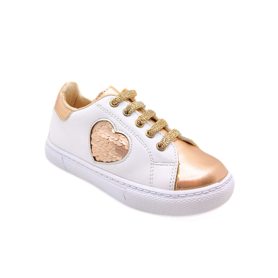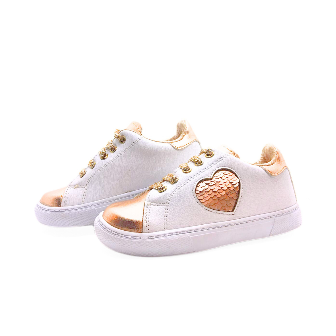 Tenis blanco con oro rosado y un toque multicolor. Son el calzado ideal para que tu pequeña luzca cómoda y fresca esta temporada de calor.