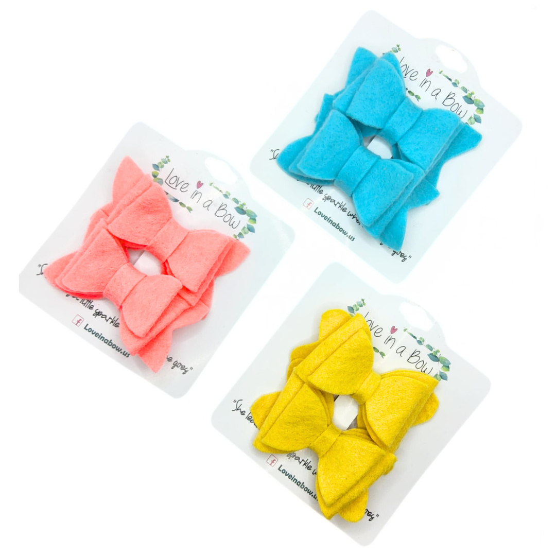 Dale un toque de ternura y estilo a cualquier peinado con este set de 2 moños de fieltro. Fabricados con un material suave y ligero, son perfectos para niñas de todas las edades. Su diseño minimalista y encantador los hace ideales para combinar con diferentes outfits, ya sea para el día a día o para ocasiones especiales. ¡El accesorio perfecto para resaltar la dulzura y la elegancia en cada momento!
