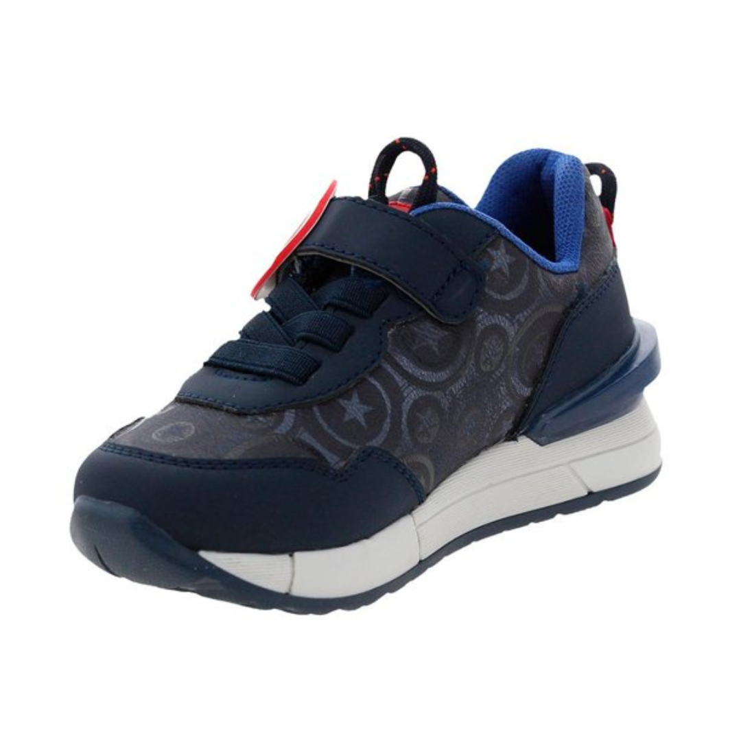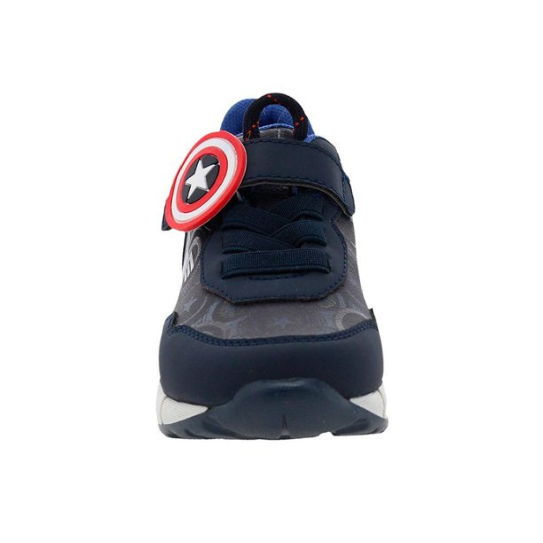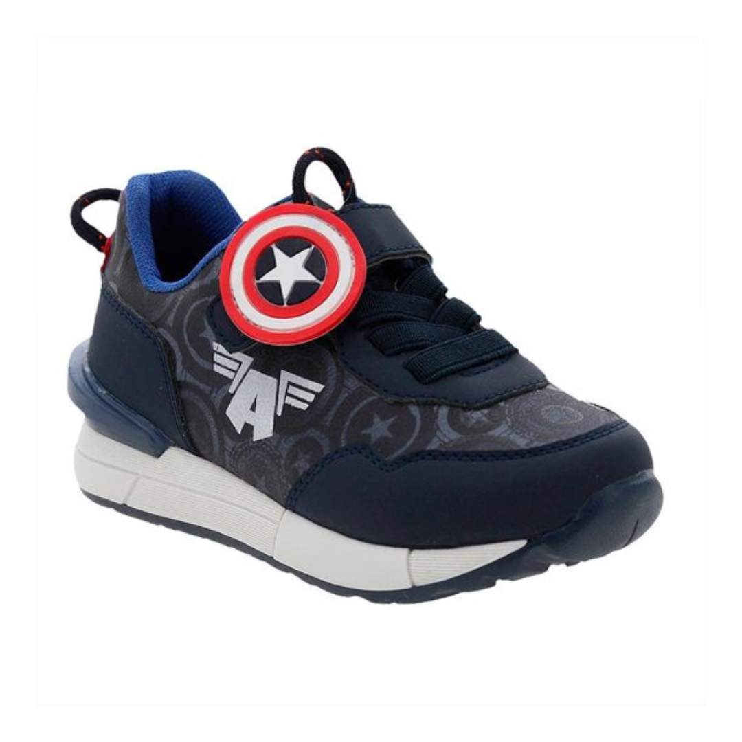 Deja que tu pequeño héroe viva aventuras increíbles con estos tenis azules inspirados en Capitán América. Estos tenis ofrecen: