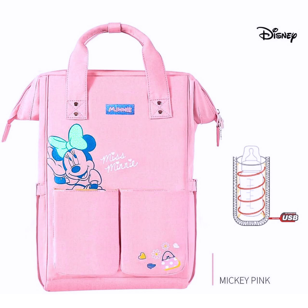 Mochila pañalera rosa con diseño de Minnie Mouse. Ofrece múltiples compartimentos para una organización eficiente y asas reforzadas para mayor comodidad, ¡lo mejor para su bebé en una sofisticada y hermosa mochila pañalera!