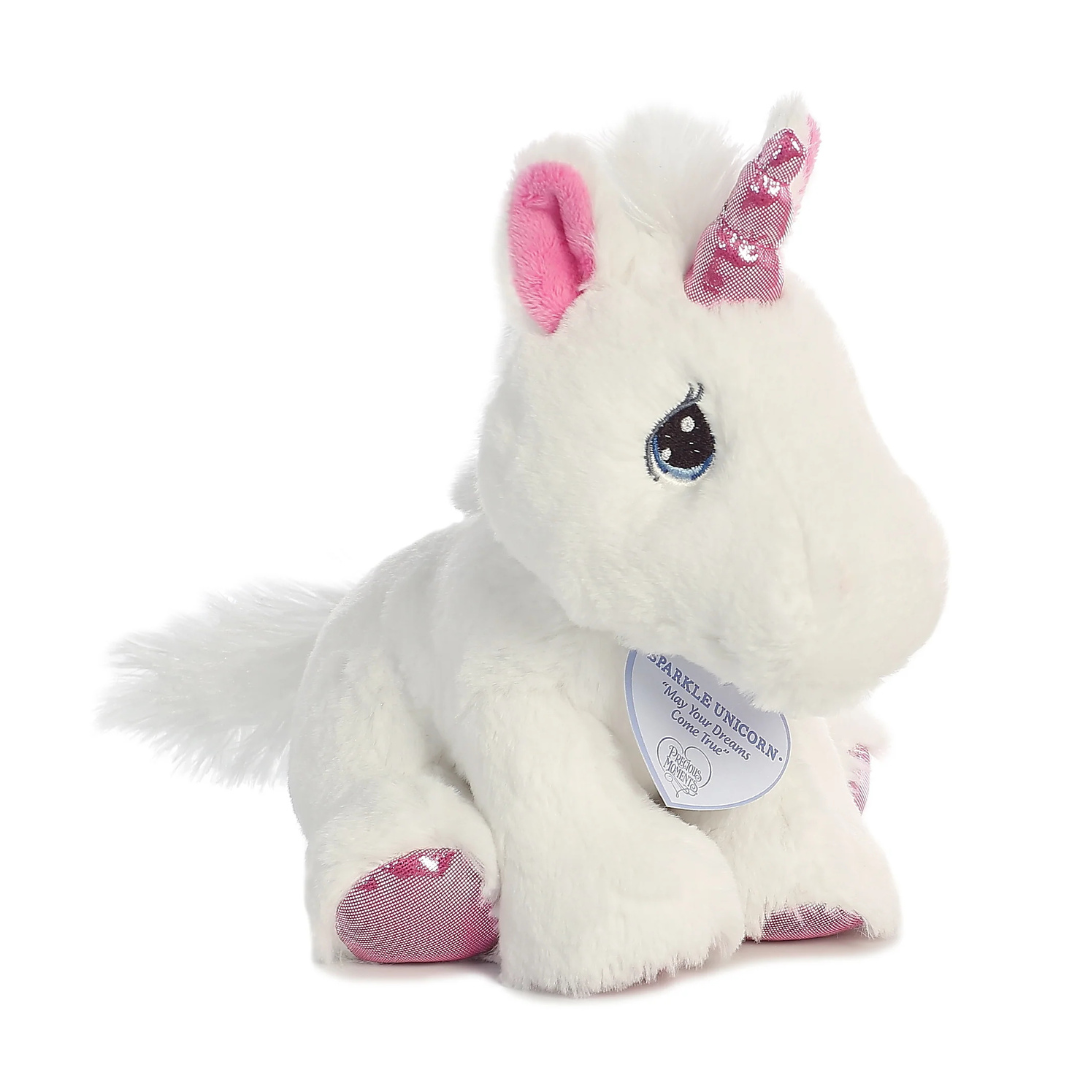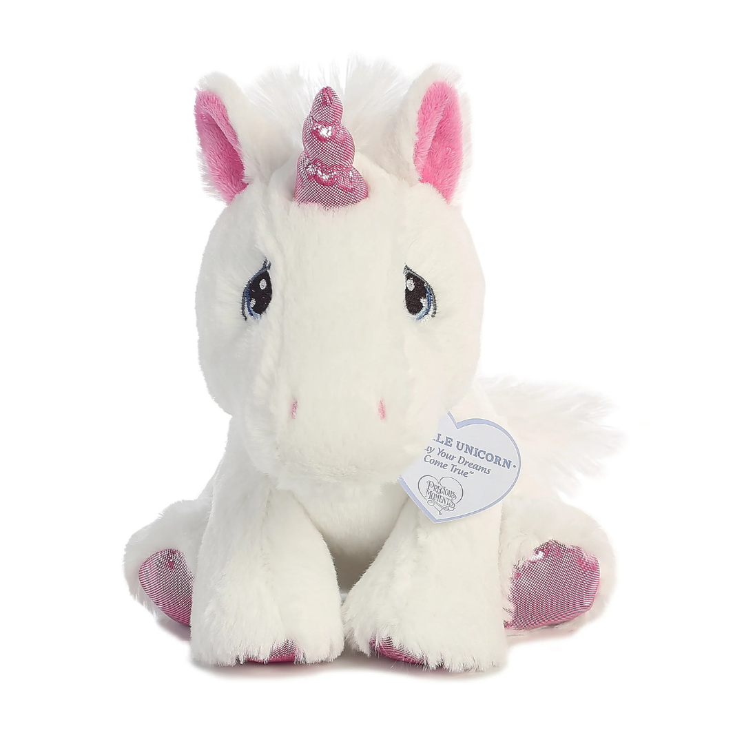Precious Moments ha sido una de las marcas de inspiración más reconocidas del mundo durante las últimas décadas, ¡y ahora está disponible en el adorable peluche Aurora! Este unicornio brillante se sienta erguido y presenta detalles rosados brillantes en las almohadillas de sus patas y en el cuerno de unicornio. Con los característicos ojos en forma de lágrima de Precious Moments, cualquier niño se enamorará de este unicornio de peluche y lo apreciará durante años.