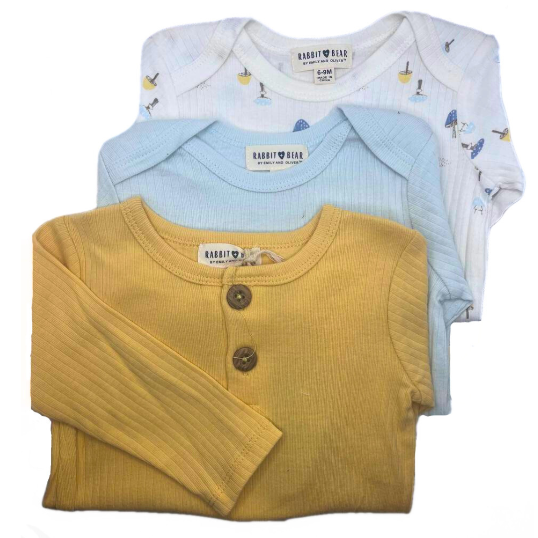 Rabbit+Bear Organic 3 Pzas De Pañaleros De Manga Larga De Algocón Colores Básicos