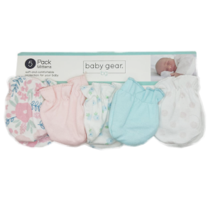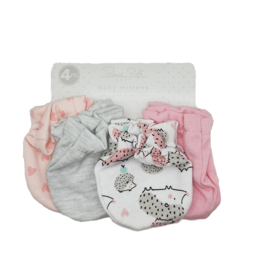 Set de 4 pares de manoplas para bebé de René Rofé, súpero suaves y con tiernos diseños.