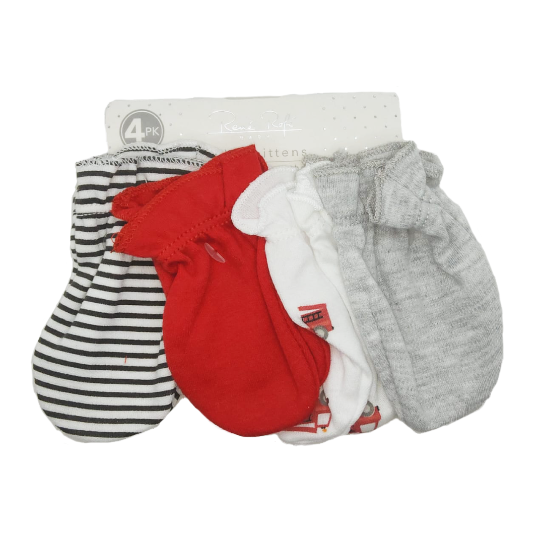 Set de 4 pares de manoplas para bebé de René Rofé, súpero suaves y con tiernos diseños.