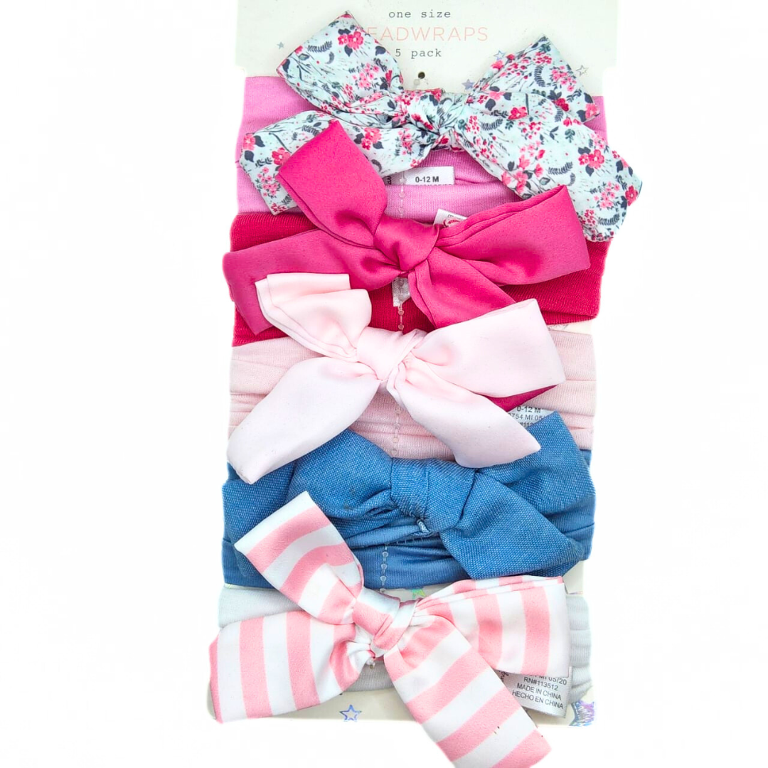 Este paquete incluye 5 diademas elásticas con moños en diferentes estilos y colores, ideales para bebés de 0 a 12 meses. Su diseño suave y ajustable garantiza comodidad mientras añade un toque adorable a cualquier atuendo.