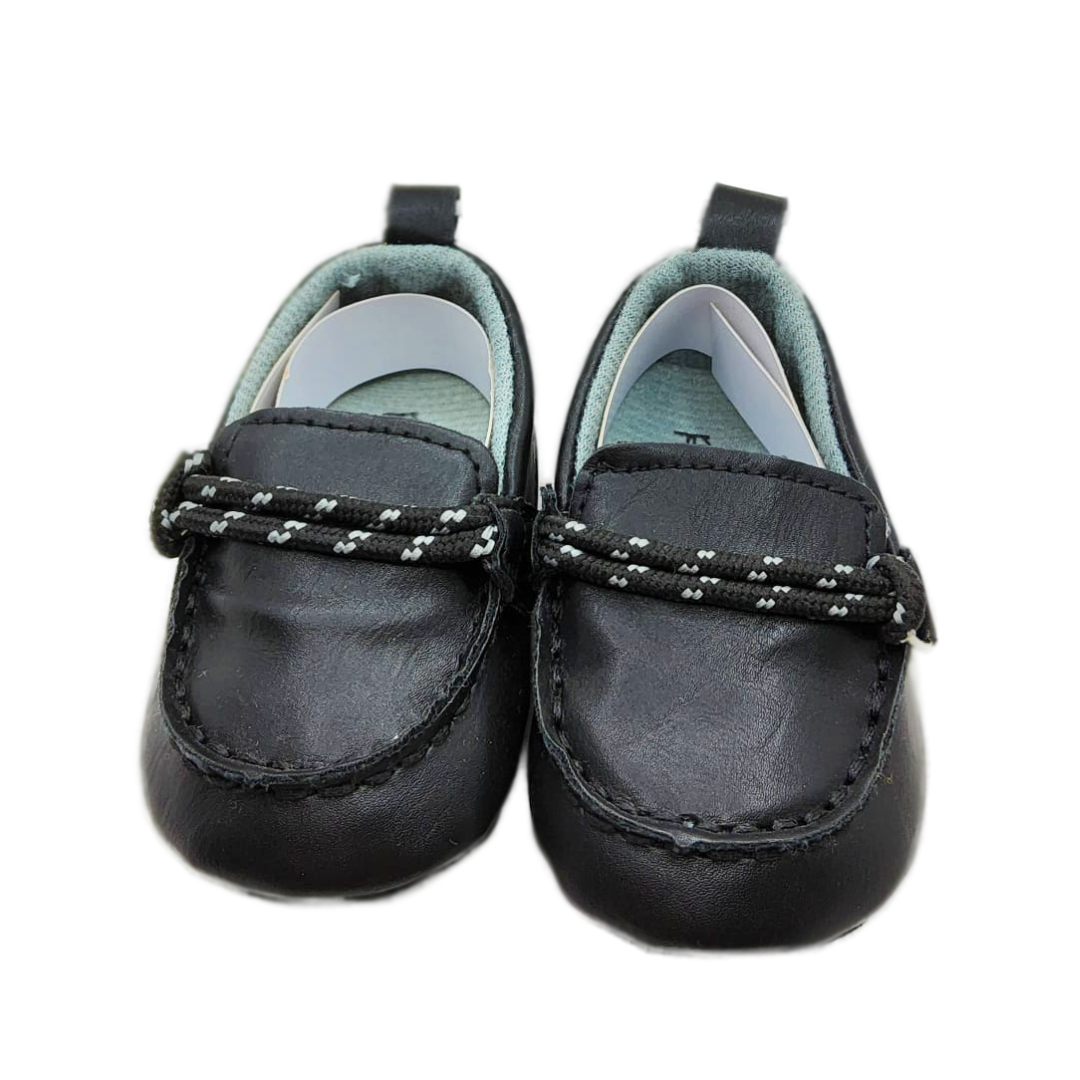Zapatos tipo mocasín con dos cordones de adorno para bebés. Ideal para eventos formales para que el pequeño vaya presentable.