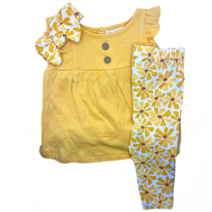 René Rofé Set De 3 Pzas Playera Amarilla, Pantalón Y Tiara Blancas Con Flores