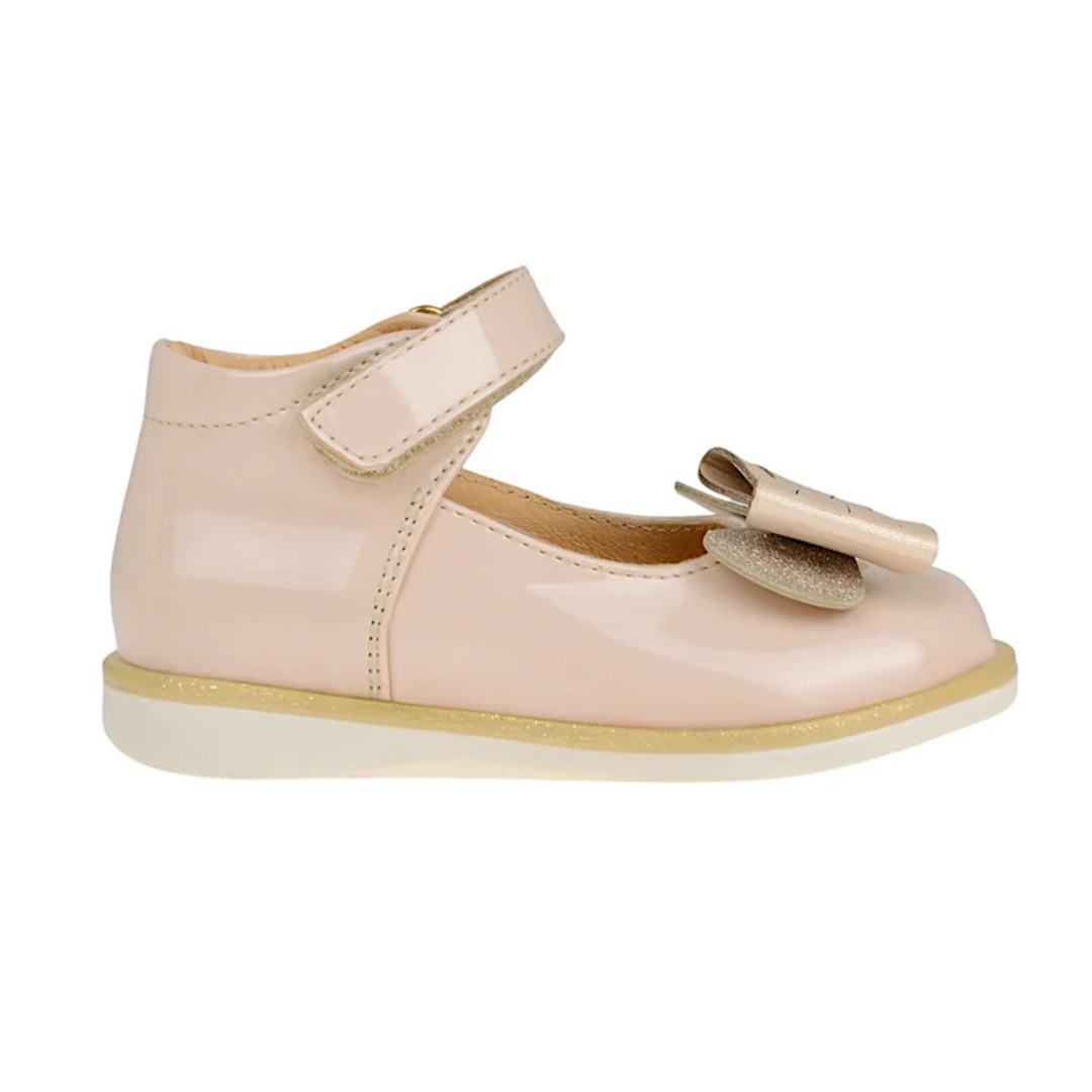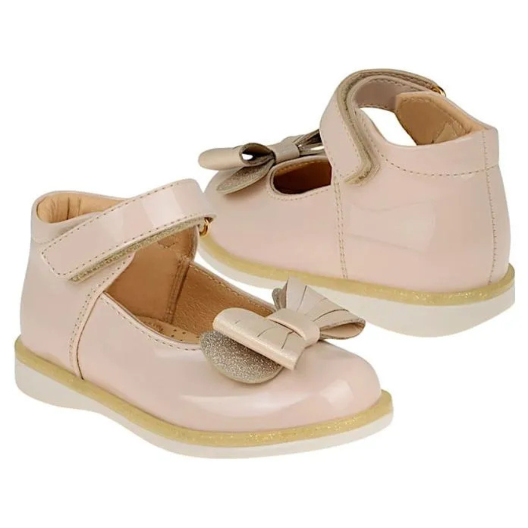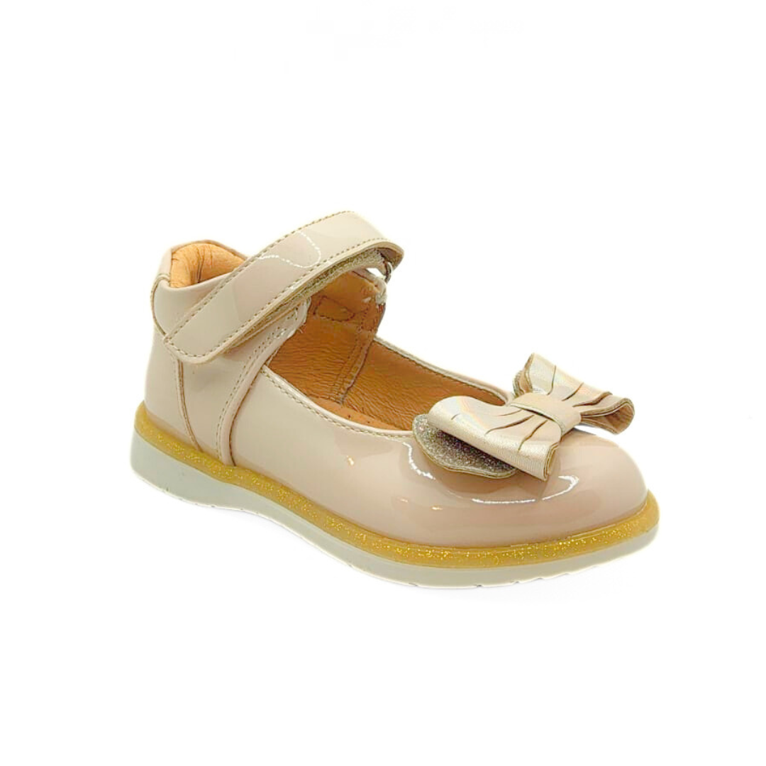 Elegancia y ternura en cada paso. Estos hermosos zapatos en color pelle carne, con acabado en charol y un delicado moño al frente, son ideales para ocasiones especiales o para un look sofisticado diario. 👧💕