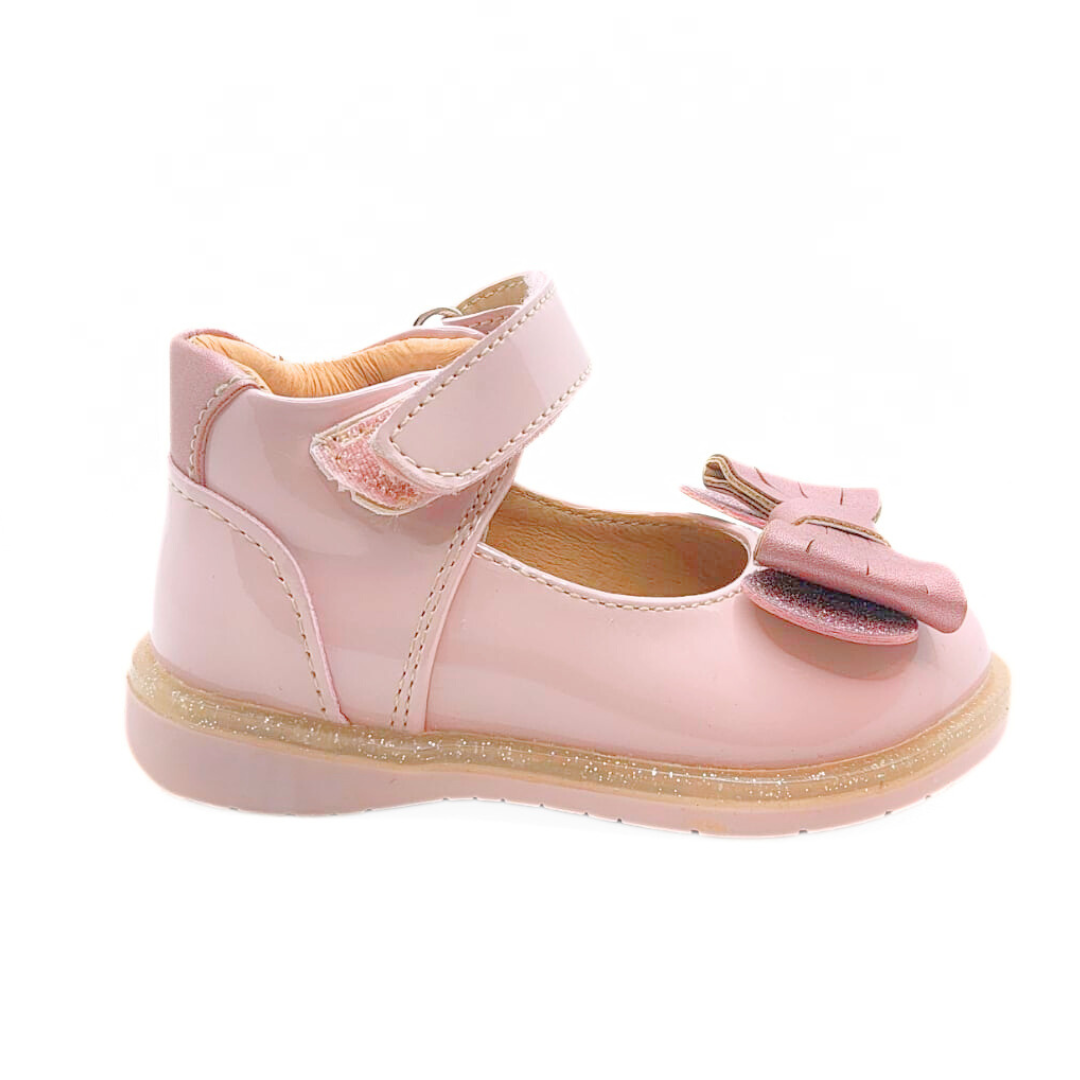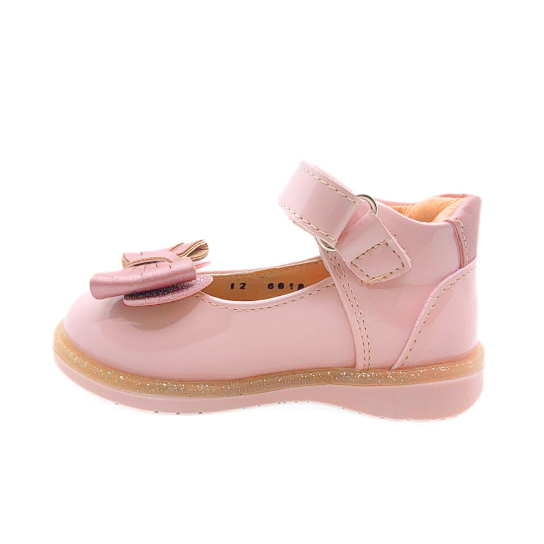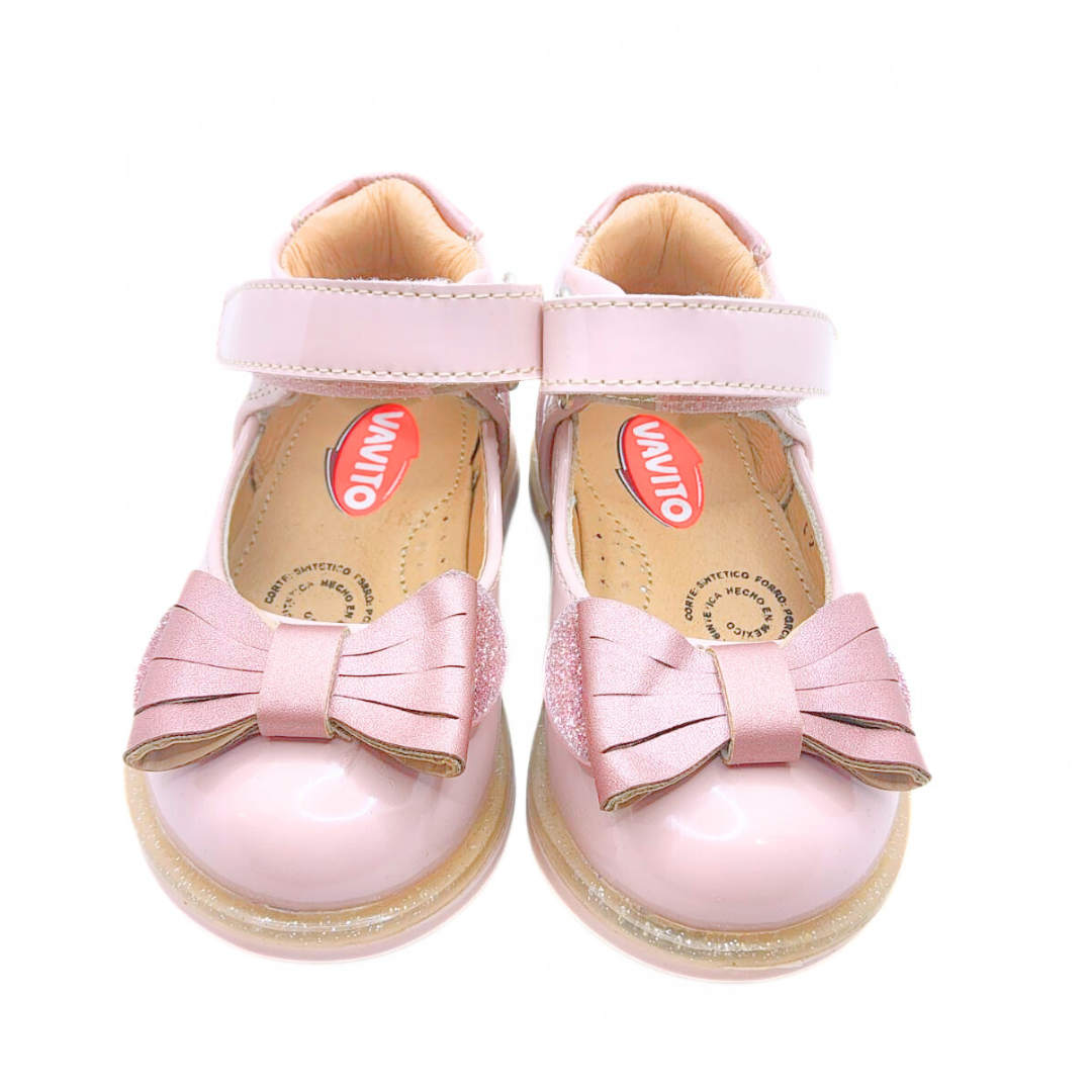 Elegancia y ternura en cada paso. Estos hermosos zapatos en color rosa, con acabado en charol y un delicado moño al frente, son ideales para ocasiones especiales o para un look sofisticado diario. 👧💕